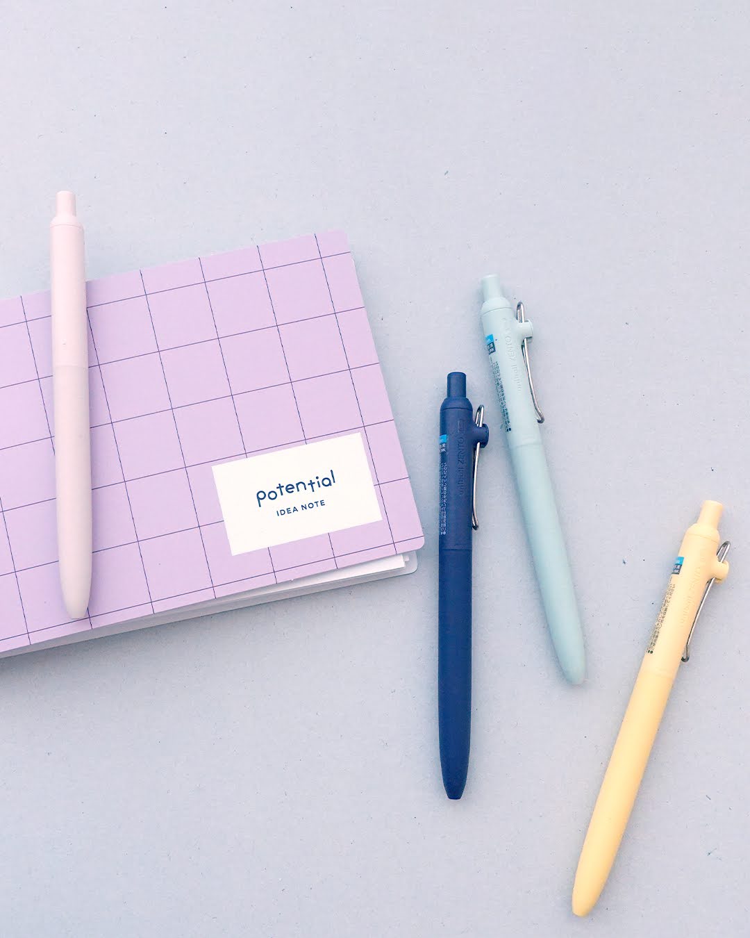 A water-based ballpoint pen with soft, calm body colors.